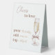 Élégant panneau "Cheers to Love" 8x10, conçu pour une douche de mariée sur le thème des perles et du Prosecco, avec verre de champagne et accents de perle et d'arc.