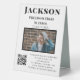 Célébrez cette étape spéciale avec un panneau amusant et amusant de tente de table conçu pour notre fête de remise des diplômes ! Le panneau présente une photo accrocheuse du diplômé avec un code QR affiché en évidence, invitant les clients à scanner et à accéder instantanément à une page Web dédiée. Autour du code QR, il y a un message de fête. La tente est conçue pour être facilement lisible et visuellement attrayante, aidant les invités qui ne savent pas quoi obtenir le diplôme.