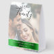 Across the bottom third, a chic emerald green band creates a polished, modern contrast. Here, your names and wedding date appear in clean white with black drop shadow lettering for a timeless, sophisticated finish. Both the upper and lower text areas are fully editable, and the background photo can be replaced with any picture you choose.