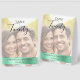 Across the bottom third, a chic sage green band creates a polished, modern contrast. Here, your names and wedding date appear in clean white with black drop shadow lettering for a timeless, sophisticated finish. Both the upper and lower text areas are fully editable, and the background photo can be replaced with any picture you choose.