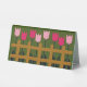 L'image imprimée sur la tente de table est d'une photo d'une tapisserie florale originale crochet mur suspendu conçu à la main et Copyright © par le designer publié Delores Chamblin. L'image de l'unique clôture rustique artisanale en bois, herbe verte et tulipes roses est reproduite sur la tente autonome.