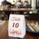 A soft ivory colored background, decorated with a large pink bow. Add your table numbers one by one.