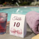 Plaque De Table Pink bow ivory party table number