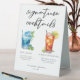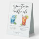 Cet élégant panneau de tentes de plage propose une typographie noire simple au-dessus de 2 boissons balnéaires et leurs ingrédients pour votre bar mariage côtier. Un joli dessin de thé glacé Blue Lagoon et Long Island ajoute une touche cool à votre menu du bar. Complétez avec les noms du couple et la date de leur réception.