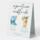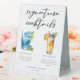 Cet élégant panneau de tentes de plage propose une typographie noire simple au-dessus de 2 boissons balnéaires et leurs ingrédients pour votre bar mariage côtier. Un joli dessin de Blue Lagoon et Pina Colada ajoute une touche cool à votre menu de bar. Complétez avec les noms du couple et la date de leur réception.