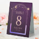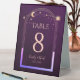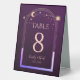 Mystical Rainbow Deep Plum Sun Moon Stars Mariage Tableau Numéros Tente Le panneau présente un arc-en-ciel coloré soleil, lune et étoiles encadré sur un profond arrière - plan de prune. À l'intérieur, il y a vos informations de numéro de table personnalisées. Conçu pour vous par Evco Studio www.zazzle.com/store/evcostudio