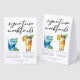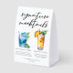 This chic signature mocktails table tent sign features simple black typography above 2 cute drinks and their ingredients for your summer wedding bar. A Blue Hawaiian Sunrise drink and non-alcoholic virgin Piña Colada add a cool flair to your bar menu. Complete with the couple's names and date for their reception.