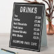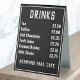 Prix de la nourriture et des boissons pour un café proposant des rafraîchissements. Modifiez les prix comme vous le souhaitez. Affiche jusqu'à 6 articles et prix de chaque côté. Noir et blanc.