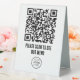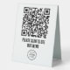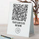QR Code Black White Menu Logo sans contact Moderne Table Tente Signe. Remplissez l'URL de votre site Web et le code QR sera automatiquement généré pour vous et un lien vers la page de menu désignée. Téléchargez votre logo d'entreprise et votre code QR Table Tente Sign est terminé! Choisissez la taille du panneau de piédestal dans le menu d'options.