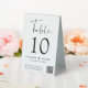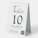 Symbole de numéro de table de réception de mariage avec "Table" dans un script moderne design, le numéro de table dans la typographie serif classique, vos noms réunis par un coeur, votre date de réception, et un code QR lié à votre site Web pour les invités à scanner pour télécharger des photos ou pour d'autres raisons. Créez chaque signe de numéro de table et ajoutez-le au panier un à la fois, puis retirez-le une fois que tous les numéros sont dans votre panier.