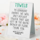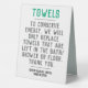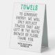 Avis de l'hôtel pour la salle de bain sur le remplacement des serviettes. Seules les serviettes laissées dans la baignoire, la douche ou sur le sol seront changées. Modifiez le libellé en fonction de vos besoins. Le message apparaît de part et d'autre.