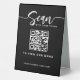 Ce panneau de tente pratique dispose d'un modèle pour afficher la liste des prix de votre restaurant, café ou comptoir alimentaire à l'aide de la technologie QR Code sans contact. Demandez à vos clients d'analyser le code QR personnalisé qui se lie directement à l'URL de votre menu. Ces panneaux sont disponibles dans une variété de tailles pour répondre à vos besoins d'affaires. Montré ici en noir avec texte blanc.
