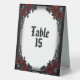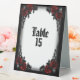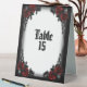 Belles roses rouges profondes sur le cadre en fer forgé un numéro de table. Il fait partie d'une suite mariage appelée Red Rose Gothic Il est facile de coordonner tout pour votre mariage une fois que vous avez choisi le thème et la palette de couleurs appropriés. Choisissez un thème mariage unique pour rendre votre journée spéciale parfaite. Le Fancy House propose un large assortiment de suites mariages à thèmes et couleurs variés. Veuillez vérifier votre texte avant l'achat final