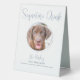 Signature Boissons de vos animaux de compagnie! Inclure votre meilleur chien, meilleur chat et tout animal de compagnie dans votre mariage avec son bar à boissons signature pour vos invités. Parfait pour les amoureux de les chiens, et un bar spécial chien sera un succès à votre mariage. Elégant Script bleu Dusty et modèles d'images. Customisez ce signe mariage animal de compagnie avec votre chien, chat, chiot ou chaton photos préférées, noms et boissons signature!. DROIT D'AUTEUR © 2020 Judy Burrows, Black Dog Art - Tous droits réservés. Signature Boire moderne Dusty Blue Dog animal de compagnie Mariage Table Tente Signal