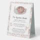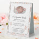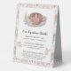 Cette enseigne Signature Drinks de charme pour la Fête des mariées Lingerie & Lattes présente un design ludique avec les jambes d’une femme assommées, entourées d’étoiles rétro. Un ensemble de lingerie rose apporte une touche amusante, tandis qu'un vase de fleurs et de champagne rose avec des lunettes donne le ton de fête parfait. L'arrière - plan en dentelle rose fantaisie ajoute une touche d'élégance à l'ensemble.