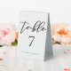 Simplement chic et élégant, notre collection minimaliste de mariage d'hiver comprend une typographie cursive élégante pour votre réception moderne. Guidez vos invités à leur table avec un script noir accrocheur sur un panneau de tente de table blanche avec votre numéro de table.