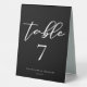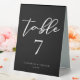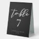 Simplement chic et élégant, notre collection minimaliste de mariage d'hiver comprend une typographie cursive élégante pour votre réception moderne. Guidez vos invités à leur table avec un script blanc accrocheur sur un panneau de tente de table noire avec votre numéro de table.