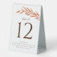 Sûrs et résistants aux éléments, ces numéros de table tentés comportent une branche orange voûtée de feuille et un élégant texte personnalisé pour non seulement montrer à vos invités où s'asseoir, mais aussi partager un peu de votre histoire à travers le texte descriptif sous le numéro.