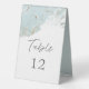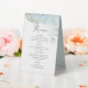 tente de table mariage avec menue et numéro de table en feuille d'or imitation bleue texturée et police de script élégante en combinaison avec sans serif. Belle carte de détails luxueuse pour mariage toute l'année. Venez voir l'ensemble des collections de notre magasin pour une expérience mariage complète.
