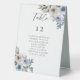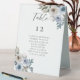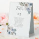 Élégant mariage floral bleu poussiéreux numéro de table et tableau de sièges avec liste d'invités