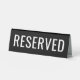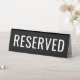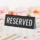 Panneau de tente en table noire avec texte blanc personnalisable "réservé" en gros caractères gras.