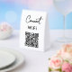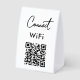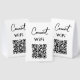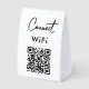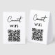 A modern business paper table tent sign design allowing your customers to connect to the free WiFi. A minimalist personalized scan and connect business table tent sign. Customize the table tent sign with your text and make it your own..