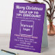 Joyeux Noël! Une des fêtes les plus célèbres de l'année. C'est aussi l'une des meilleures saisons pour annoncer votre entreprise ou pour promouvoir votre marque auprès de clients ou clients. Panneau de table personnalisable avec la vente de Noël, votre nom d'entreprise et d'autres informations. Panneau de tableau que vous pouvez utiliser comme matériel marketing pour attirer plus de clients. Customisez-le et affichez-le pour convaincre plus de clients d'acheter vos produits ou clients d'aimer vos services. Les couleurs design sont des textes rose et blanc sur arrière - plan violet. Les contenus sont des voeux de Noël joyeux, des textes de vente avec pourcentage de réduction que vous offrirez, des dates de vente, votre nom d'entreprise, logo, adresse, numéro de téléphone, e-mail et site Web ou votre page de médias sociaux d'affaires. Veuillez vérifier l'apparence après avoir téléchargé le logo et tapé des textes. Si l'apparence vous plaît, vous pouvez passer votre commande maintenant. Si vous avez besoin de redimensionner et déplacer le logo et les textes pour s'adapter à ce panneau de table, s'il vous plaît changer dans l'outil de conception. Vous pouvez également modifier la couleur arrière - plan, la couleur de police et le style de police dans l'outil de conception. Joyeux Noël! Je vous souhaite plus de ventes ce jour férié.