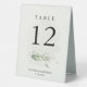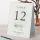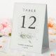 Panneau de tente moderne, propre et sophistiquée mariage numéro de table avec feuilles aquarelle verte feuillage.