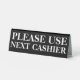 Idéal pour toute chaîne d'affaires ou de supermarchés qui sert les clients en utilisant des guichets. Un arrière - plan noir a une police blanche en gras qui dit "s'il vous plaît utilisez la prochaine caisse". Personnalisez le libellé de votre choix et n'hésitez pas à ajouter une couleur arrière - plan et à modifier la couleur, le style et la taille de la police en fonction de vos besoins professionnels.