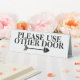 Idéal pour toute entreprise ou boutique. Un arrière - plan blanc a une police noire en gras qui dit "S'il vous plaît utilisez une autre porte" avec la silhouette d'une flèche pointant dans la direction à suivre. Personnalisez le libellé à n'importe quel de votre choix et n'hésitez pas à ajouter une couleur arrière - plan et à modifier la couleur, le style et la taille de la police en fonction de vos besoins professionnels.