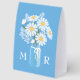Plaque De Table Wedding Daisies Mason Jar Monogram Initial Blue