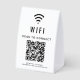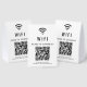 Make it easy for clients and guests to get online with this WiFi QR Code Table Sign, a sleek and practical addition to any café, salon, restaurant, Airbnb, office, or waiting room. This modern paper table tent sign lets visitors scan the QR code to instantly connect—no need to type long network names or passwords. This lightweight tabletop display is perfect for placing on counters, reception desks, or tables. The clean design with bold text and clear layout ensures the QR code is easy to scan and read at a glance. Customize it with your WiFi qr code, network name, and password or other text to create a polished, professional look that matches your space and keeps your guests happy.
