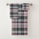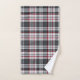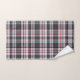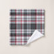 Plaque de tartan texturée grise avec fines bandes rouges et bleues.
