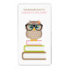 Illustration adorable d'une chouette portant une paire surdimensionnée de lunettes de lecture, assise sur une pile de livres.