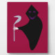 Cette magnifique plaque présente une image de la Grande Faucheuse créée à l'aide de vecteurs. Il tient menaçamment son escroquerie dans sa main blanche osseuse. Ses yeux violets enfoncés et son sourire démoniaque ne sont visibles que sous son manteau noir.