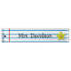 Plaque de bureau de l'enseignant amusante, avec des lignes graphiques de papier carnet et une étoile jaune souriante, à l'extrême droite. Le texte noir personnalisé est prêt à être personnalisé. Ça fait une idée de cadeau.