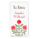 Un étiquette de bibliothèque personnalisé avec une lettre noire vintage et ouverte et l'art antique des marguerites et des feuilles de curling en rouge et or, restauré à partir d'un manuscrit antique.