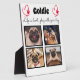 Célébrez votre meilleur ami avec un Collage Photo personnalisé. Quand vous avez tant de souvenirs et de photos amusants, une seule photo ne suffit pas. Cette plaque a 4 photos, une citation, et vous pouvez personnaliser le nom de votre animal de compagnie. Vous pouvez également modifier la couleur de l'empreinte de patte. Pour customiser, vous pouvez changer la couleur et la police, entrer votre propre devis, télécharger vos propres photos ou même changer la couleur arrière - plan. Que vous ayez un nouveau chiot, ou que vous vouliez juste commémorer tous vos moments spéciaux, chaque chien mérite une tenue de famille personnalisée.