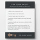 Réouverture de votre entreprise immobilière à l'ère des 19 derniers? Gardez vos acheteurs et vendeurs en sécurité grâce à cette plaque magnifiquement conçue qui est parfaite pour l'affichage dans les grands magasins et les expositions. Customisez le libellé qui correspond à vos besoins et à l'orientation de votre région en matière de santé et de sécurité publiques. Montré avec des conseils de base pour maintenir un environnement plus sûr pendant les rencontres immobilières courantes, y compris le port d'un masque et de couvertures de chaussures, l'assainissement des mains, la réduction du toucher des effets personnels des vendeurs, et des instructions pour replanifier si vous vous sentez malade. Personnalisez avec votre nom d'entreprise le long du bas, à côté d'une illustration vintage de clé squelette en fausse feuille de cuivre.