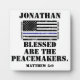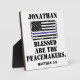 Le mince drapeau bleu pour le soutien des policiers avec le verset de la Bible de Matthieu 5:9 "Heureux les artisans de la paix", un nom personnalisable.