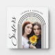 Un cadeau spécial pour votre soeur, que ce soit un membre de la famille ou une soeur de la sororité, ce design moderne et design de plaque a un modèle d'arche géométrique contemporain à personnaliser avec votre photo sélectionnée. Célébrez votre relation de soeurs et de moments spéciaux avec ce cadeau personnalisé qui symbolise votre lien spécial et votre dévotion à l'autre. Montré ici avec du texte noir sur un arrière - plan blanc.