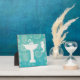 Un joli lavabo à la décoration en lin bleu avec coquillages, coraux et hippocampes.