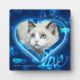 Plaque Photo Blue Neon Hearts & Love, Custom Pet Photo - Carré