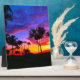 Plaque Photo Blue Red Sunset Exotic Hawaiian Beach Palm Trees