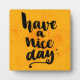 Bonne journée ! Calligraphie à encre noire vectorielle pour cartes, impressions et contenu de médias sociaux, design de mode. Citation positive, en lettrant sur l'arrière - plan grunge jaune. | Bigstock® - Tous droits réservés.
