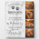 Élégante plaque photo hommage animal de compagnie avec un arrière - plan en marbre élégant, un collage photo de 4 de l'animal dont vous vous souvenez, une citation sympathique qui dit "quand quelqu'un que vous aimez devient un souvenir, ces souvenirs deviennent un trésor", empreintes de pattes, le nom de votre chien ou chat, et leur date de naissance/mort. Cette plaque commémorative animale moderne est facile à customiser et est le gardien idéal pour vous, votre famille ou vos amis pour honorer ces animaux de compagnie qui ne sont plus avec nous.