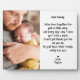 Un cadeau photo personnalisé pour un nouveau père de son bébé est une façon très émouvante de célébrer les premiers moments de parentalité d’un père. Cette plaque photo personnalisée sur table comporte une photo couleur complète, ainsi qu'un poème sucré imprimé en noir sur une police ludique sur un arrière - plan blanc propre. Le message sentimental express l’amour et l’appréciation d’un bébé à son père, ce qui en fait le souvenir parfait pour la fête des pères, Noël ou un cadeau de père pour la première fois. Le design équilibre émotion profonde avec une esthétique moderne et minimaliste, permettant à votre photo choisie et texte personnalisé de prendre le devant de la scène dans un hommage significatif et durable.