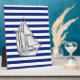 Un chrome argenté comme régatta design voilier sur un décor bleu marine rayures. Un cadeau de voilier nautique moderne. Utilisez le lien "Demandez à ce concepteur" pour nous contacter avec vos demandes de design spécial ou pour obtenir de l'aide pour répondre à vos besoins de personnalisation.
