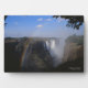 Victoria Falls 2 photos et cadeaux naturels présente une belle photo en couleur de Victoria Falls ou Mosi-o-Tunya (la fumée que Thunders) avec un arc-en-ciel se lançant dans un brillant ciel bleu d'Afrique, prise par Kurt Keller avec un appareil photo de 35 mm au Zimbabwe, lors d'un safari africain. Victoria Falls est l'une des sept merveilles naturelles du monde. C'est une majestueuse cascade sur le fleuve Zambèze en Afrique australe entre les pays de la Zambie et du Zimbabwe. Partagez la beauté avec une photo d'une cascade magnifique et arc-en-ciel aujourd'hui!