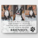 La perte d'un animal de compagnie est déchirante, mais vous pouvez honorer leur mémoire avec cette plaque de collage photo de mémorial d'animal unique. Comportant 3 photographies de votre chien ou chat bien-aimé, il suffit de télécharger vos photos depuis votre téléphone ou votre ordinateur - une citation de sympathie qui dit 'Votre vie était une bénédiction, votre mémoire un trésor, vous êtes aimé au-delà des mots, regretté au-delà de toute mesure'. Personnalisez en personnalisant le nom de l'animal, les dates de naissance et de décès et l'initiale dans l'empreinte de patte. Cette belle plaque commémorative de perte d'animal à effet marbre est le cadeau parfait pour vous-même, la famille ou un ami.